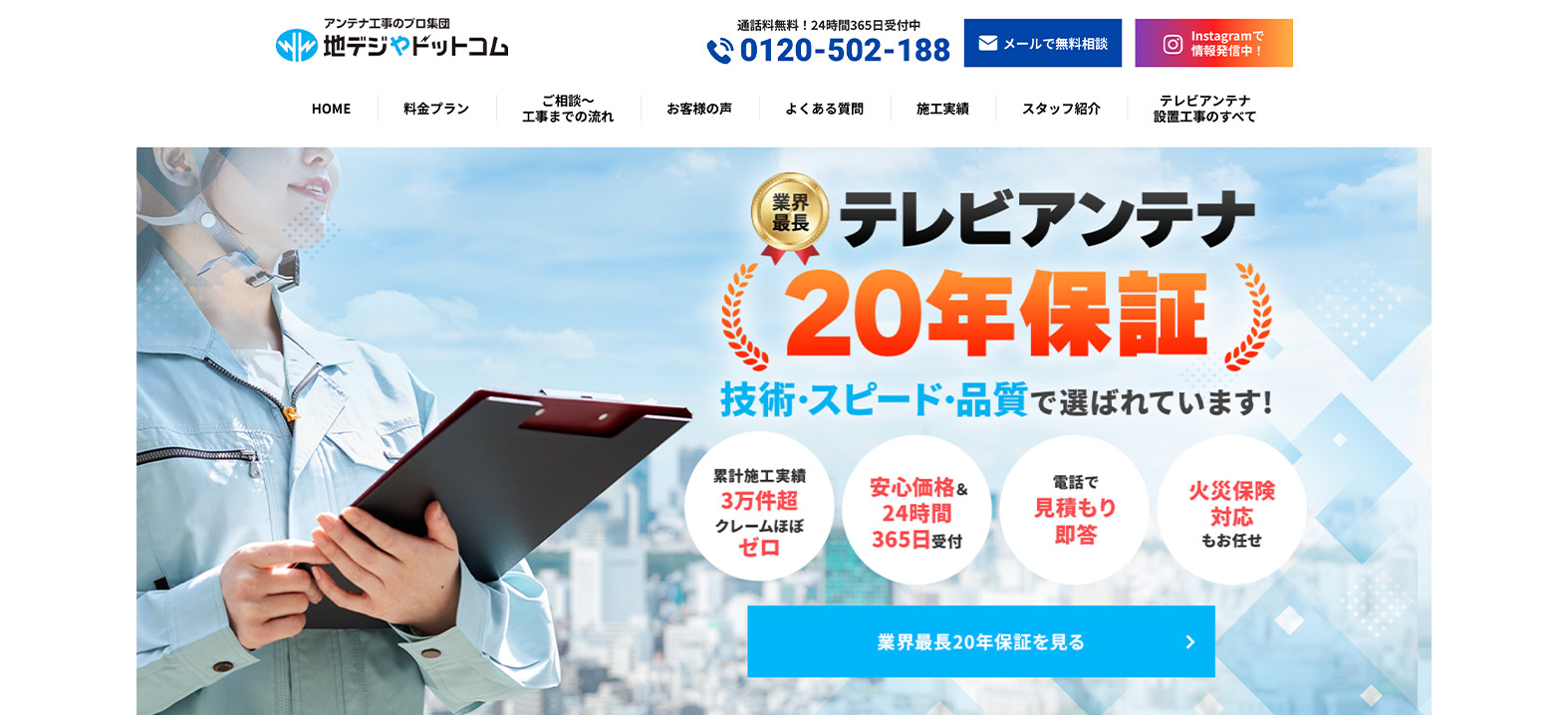 アンテナ110番は、工事業者と提携しており、地域に応じた最適な業者を見つけることができます。