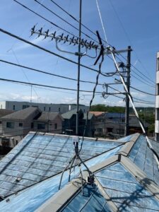 屋根の上に高く高く設置されている八木式アンテナ?️