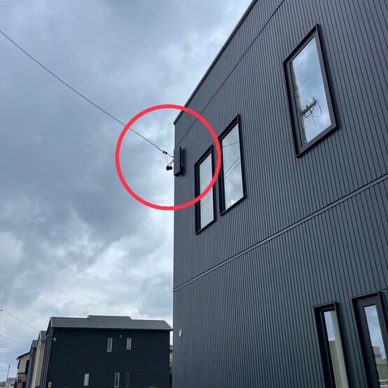 黒い壁と同色の黒色のアンテナを設置することで外壁に馴染む仕上がりとなっています?✨