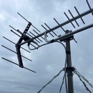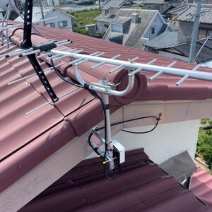 台風や強風がアンテナに影響を及ぼしテレビが映らなくなってしまうことはあります。アンテナの設置時に電波が良好でも、雨風の影響で電波が減衰しテレビの映像に不具合が生じることもございます。ブースターを合わせて設置することで症状を軽減することもできますので、是非ご相談くだい。