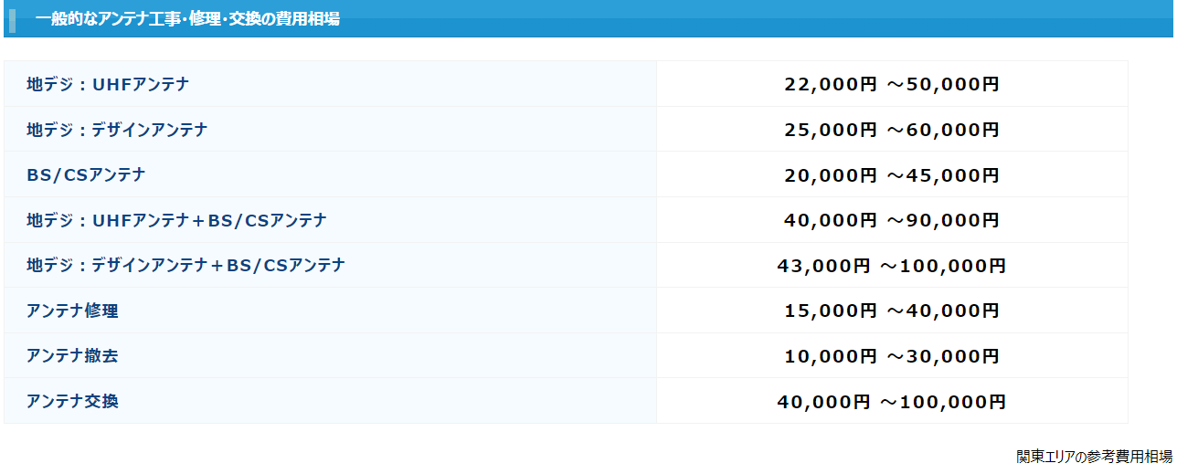 ただアンテナ専門業者と比べると費用は割高です。