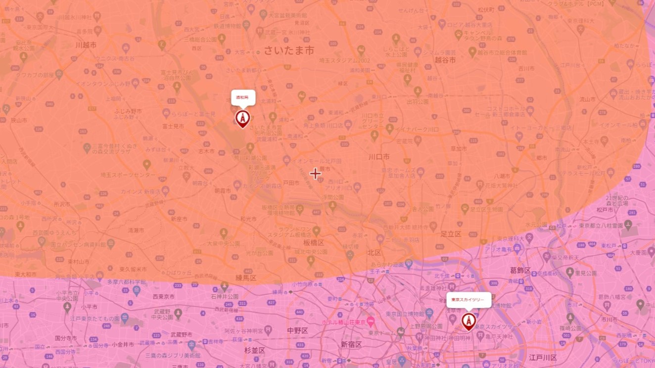 戸田市は東京都板橋区と荒川を挟んで隣接しており、全域がスカイツリーからの地デジ電波受信エリアに含まれています。