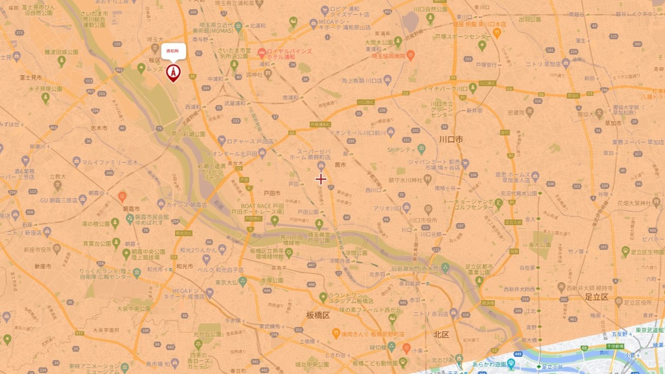 浦和局は埼玉県ローカル放送局「テレビ埼玉」の電波を送信しており、戸田市全域もこの受信範囲に含まれています。