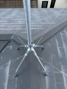 そして、屋根の足場4か所をワイヤーでしっかりと固定?