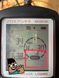 電波の強さ(dB)や品質(MER・BER)を測ります。