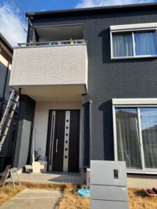 黒い壁と同色の黒色のアンテナを設置することで外壁に馴染む仕上がりとなっています。