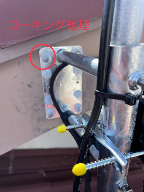 外壁に穴をあけた箇所からの腐食を防ぐ目的で、シリコン樹脂でコーキング処理を行っています✨?