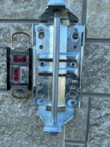 金具を取り付ける際には、外壁に数ヶ所小さな穴を開け、付属のネジでしっかりと固定します。