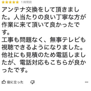 お伺いするスタッフは、完全自社雇用のアンテナ専門の熟練の工事員です?