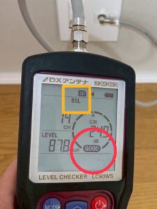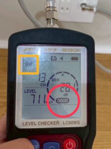 壁のアンテナ端子で受信電波のレベルを計測できるので