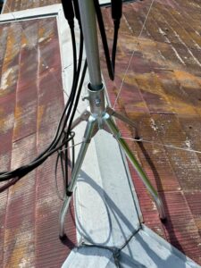 アンテナの重量は約1kgと軽量ですが、4方向からしっかりワイヤーで固定しており、