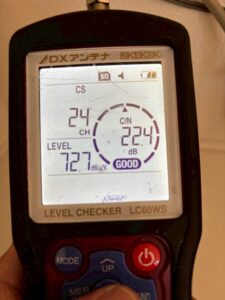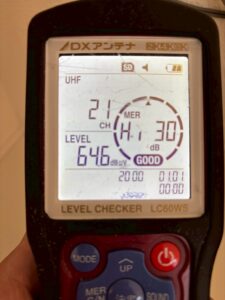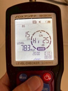 壁のアンテナ端子で受信電波のレベルを計測できるので