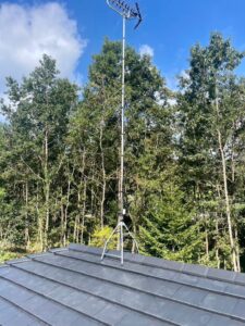 屋根の上の場合はワイヤーでしっかり固定します!