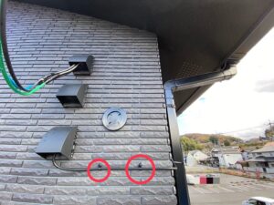 金具をビスで外壁に固定するため、ビス穴を数か所開けます?