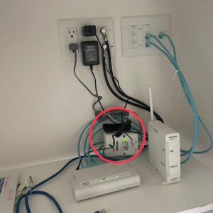 以下画像の丸印部分の機器は、ブースターの電源部で屋内のマルチメディアボックスに設置しています✨