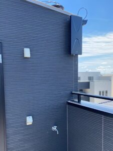 O様邸ではデザインアンテナを壁面の高所部分に設置すると