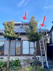 屋根の上にも小さい梯子を立てました?