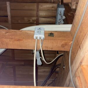 今回の施工では、本体部を屋外のアンテナの下に、電源部を屋根裏の分配器そばに設置しました?