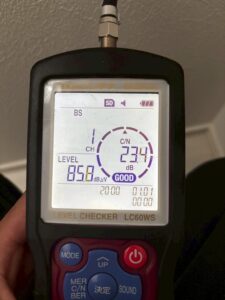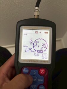 壁のアンテナ端子で受信電波のレベルを計測できるので