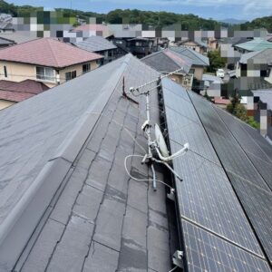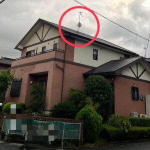 K様邸には、屋根上に設置されたUHFアンテナとBS/CSアンテナがありますが