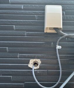 屋外から屋内へ入線させるため、壁に穴を開けます!